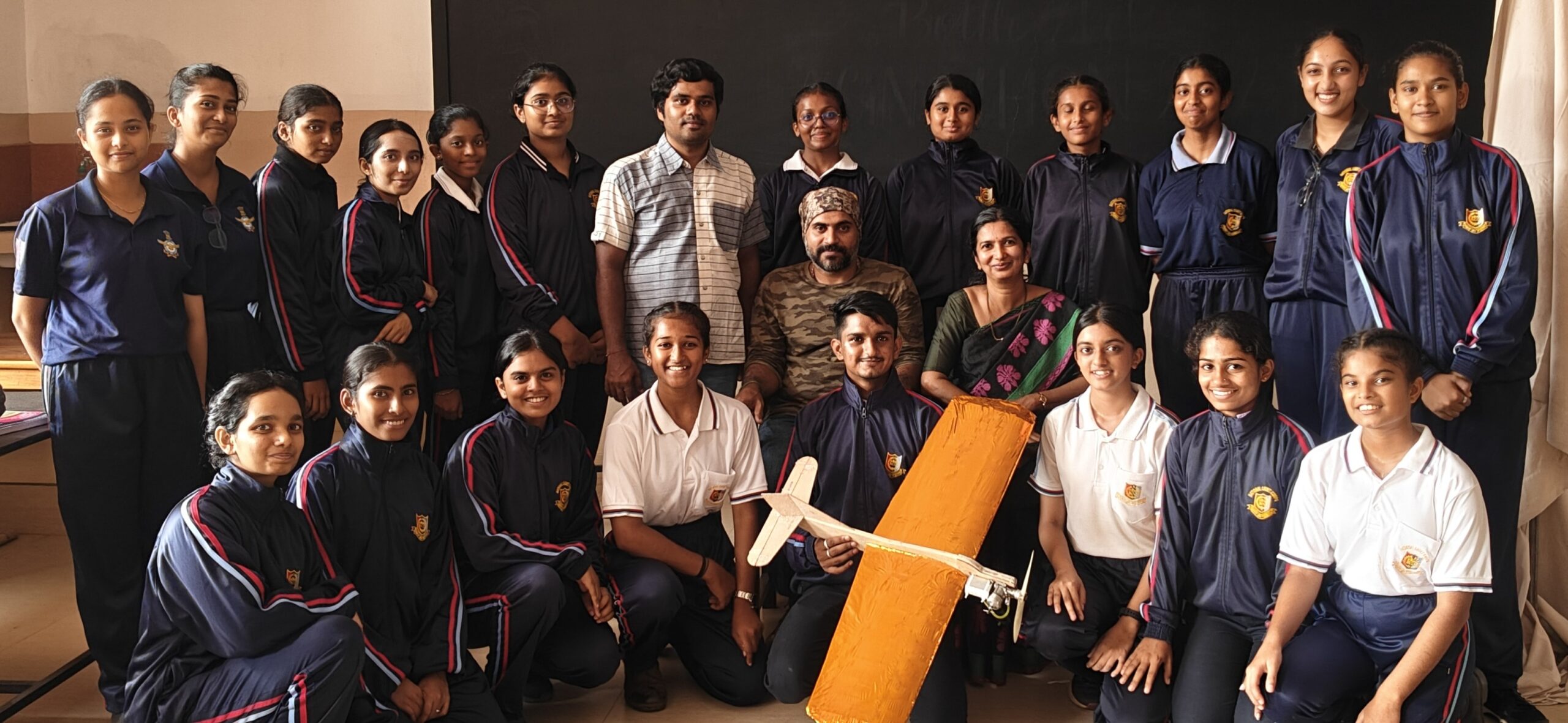 "Viyaddrony R&D team with their award-winning High-Lift UAV, recognized in the India Book of Records for aerospace innovation."